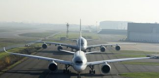 Heimflug der Airbus Großraum-Jets A350 und A380 für Qatar Airways