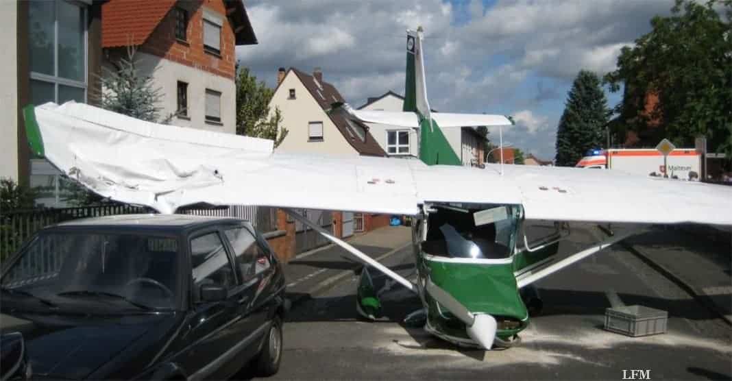 Bevor das Flugzeug mit verbogenen Tragflächen, zerbrochener Frontscheibe und abgebrochenem Bugrad im Kopfstand zum Stehen kam, kollidierte es mit verschiedenen Hindernissen und stieß an ein parkendes Auto.