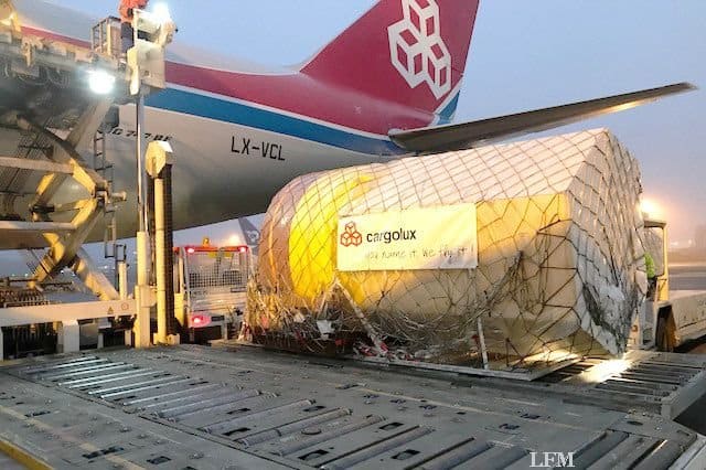 Cargolux hat zwei übergroße Bojen von Luxemburg nach Xiamen in China geflogen. Die hochempfindlichen Messbojen sollen bei den geplanten Offshore-Windparks Zhangpu and Changle vor der Küste der südostchinesischen Provinz Fujian zum Einsatz kommen.