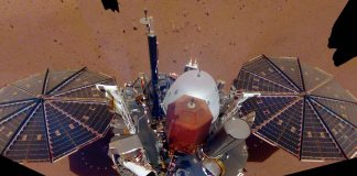 Marslander Insight erkundet Bohrstellen für Maulwurf