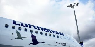 A321-100 der Lufthansa mit Kranich auf den Federn