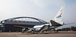 Boeing 747SP mit Loch im Flugzeugbauch bei der Wartung