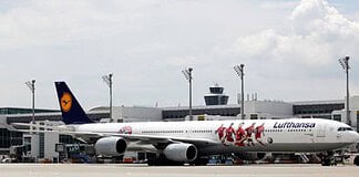 Airbus A340 mit Stars des FC Bayern München auf dem Rumpf