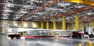 MC-21-Flügel aus Verbundwerkstoff beim Stabilitätstest