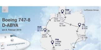 Lufthansa-Jumbo fliegt neues Logo im Lowpass