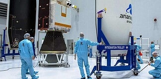 Windsatellit Aeolus auf Kourou in der Starthülle