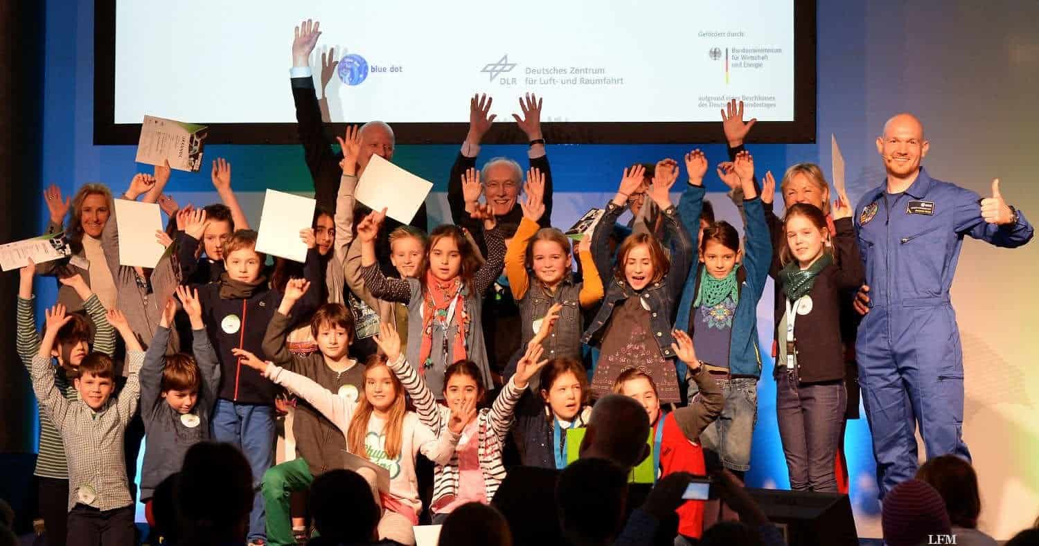 Kreative und motivierte Viertklässler aus Köln, Wuppertal, Ludwigsburg und Forchheim nahmen bei der Siegerehrung im Deutschen Technikmuseum in Berlin persönliche Glückwünsche von Alexander Gerst entgegen.