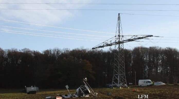 Mit Hilfe eines Hubschraubers waren Vorseile für neue Stromleitungen angebracht worden. Beim Nachspannen eines Seiles drehte...