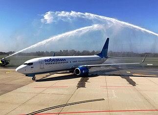 Empfangsfontänen für Boeing der Pobeda aus Russland