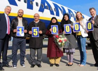 Ryanair feiert 150.000. Fluggast am Flughafen Nürnberg