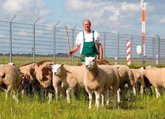 Schafe pflegen Grünflächen des Flughafens Hamburg