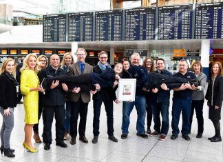 Gruppenfoto augsezeichneter Ausbilder am Flughafen München