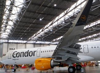 Flugzeug ab Werk mit neuen Technologien bei Condor
