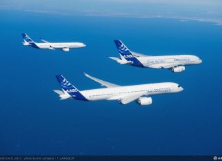 Großraum Flugzeug Familien Ausflug: A330 und A380 mit A350 XWB