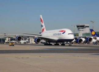 Airbus A380 der British Airways fliegt Route London-Frankfurt