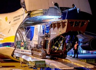 Antonov An-124 holt am Stuttgart Airport schwere Brecher