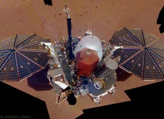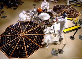 Marslander Insight erkundet Bohrstellen für Maulwurf