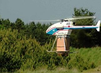 Helikopterdrohne für Abwurf von Hilfspaketen im Test