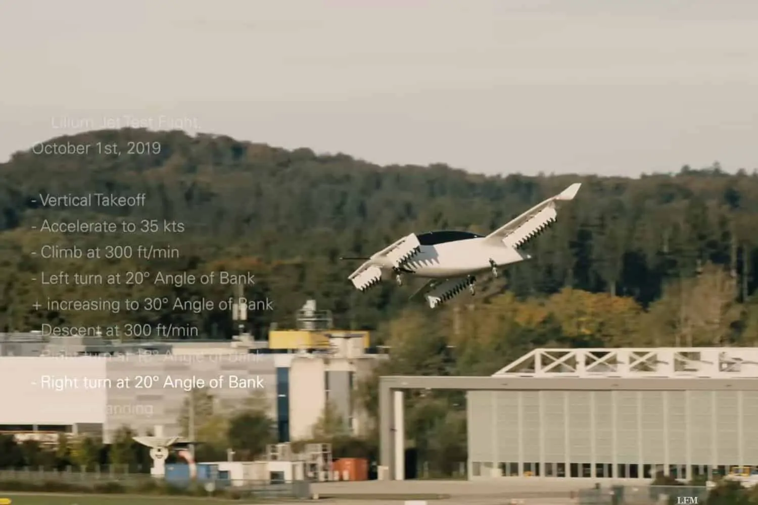 Das elektrisch betriebene, futuristische Flugzeug flog eine 8, und legte sich dazu bis zu 30 Grad in Schräglage. Dabei startete und landete es senkrecht und beschleunigte dabei auf über 30 Knoten. Die Linkskurve war bei diesem Testflug, der Anfang Oktober durchgeführt wurde, der eigentliche Zweck. Dabei wurden die 20° AoB (Angle of Bank) für eine 90°-Wende eingeleitet. Darauf folgte ein AoB von 30° für den Rest der Kurve.