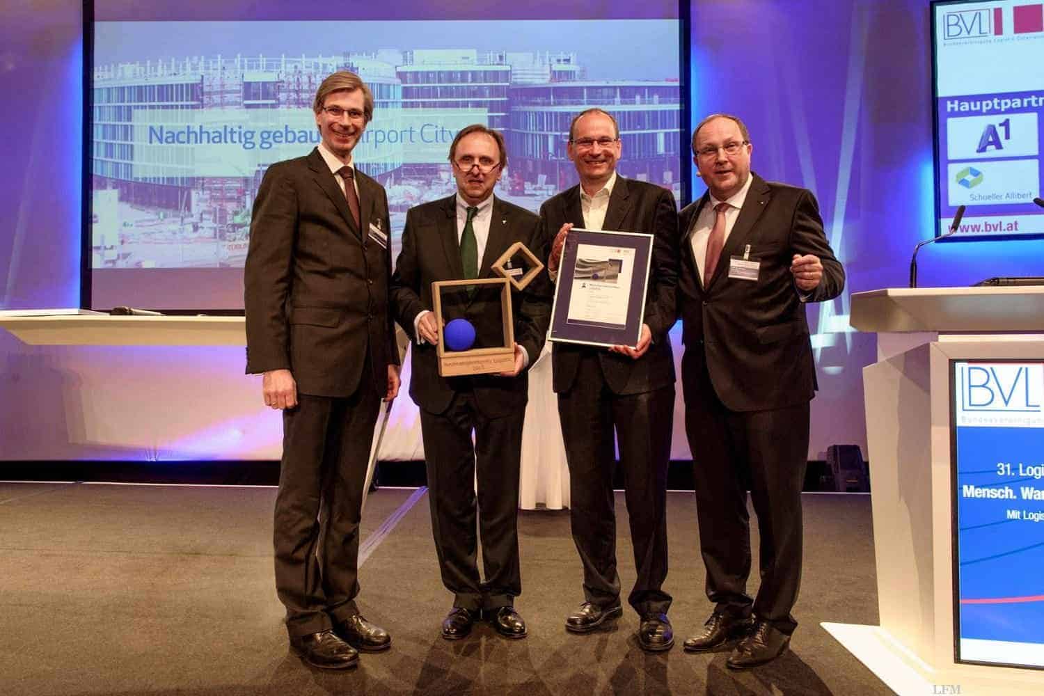 Auf dem Foto (von links): Roman Stiftner, Präsident BVL Österreich, Walter Schoefer, Geschäftsführer Flughafen Stuttgart GmbH, Prof. Mag. Dr. Manfred Gronalt, Institutsleiter, Institut für Produktionswirtschaft und Logistik, Universität für Bodenkultur, Wien, Prof. Dr.-Ing. Thomas Wimmer, Präsident BVL Deutschland.