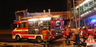 Fliegerbombe und Blitze am Vorfeld des Flughafen Nürnberg