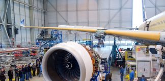 Trent XWB-Triebwerke am ersten A350 MSN001 montiert