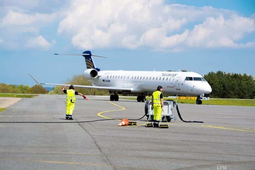 Am Samstag, den 02. April, geht es wieder los. Planmäßig um punkt 12:00 Uhr landet eine Bombardier Canadair Regional Jet CRJ900 aus Düsseldorf und fünf Minuten später eine Bombardier Dash8 Q400 aus Frankfurt am Main.