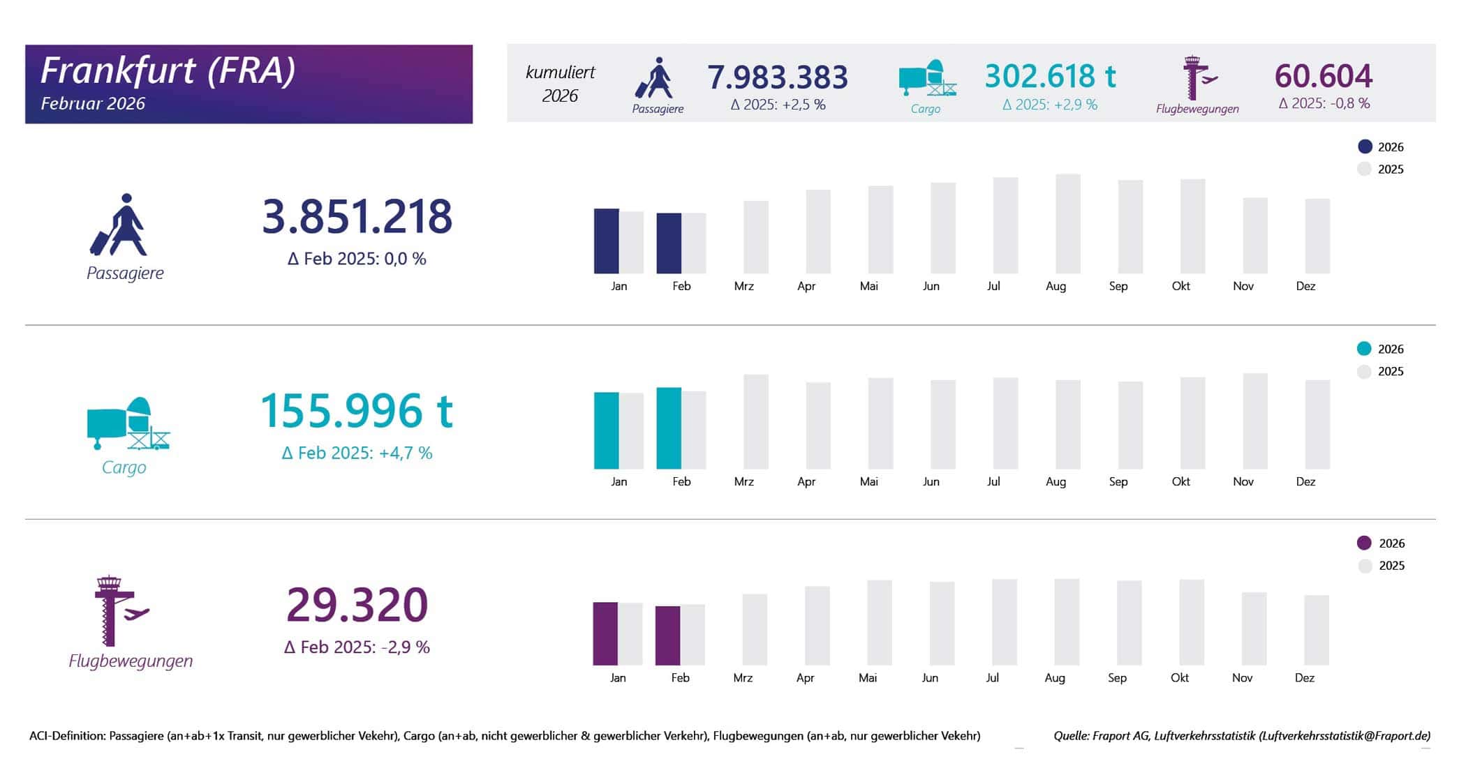 Der Februar setzte für den Flughafen Frankfurt ein wichtiges Zeichen hinsichtlich der Passagierzahlen, die mit 3,9 Millionen Fluggästen auf einem stabilen Niveau gegenüber dem Vorjahr verblieben. Trotz der Herausforderungen wie witterungsbedingter und streikbedingter Flug-Annullierungen, die rund 70.000 Passagiere beeinflussten, konnte sich der Flughafen als eine bedeutende Drehscheibe im internationalen Luftverkehr behaupten. Diese Entwicklung zeigt, dass der Betrieb auch unter widrigen Umständen eine hohe Stabilität aufweist, was sowohl für den Standort als auch für die beteiligten Akteure in der Branche von großer Bedeutung ist.